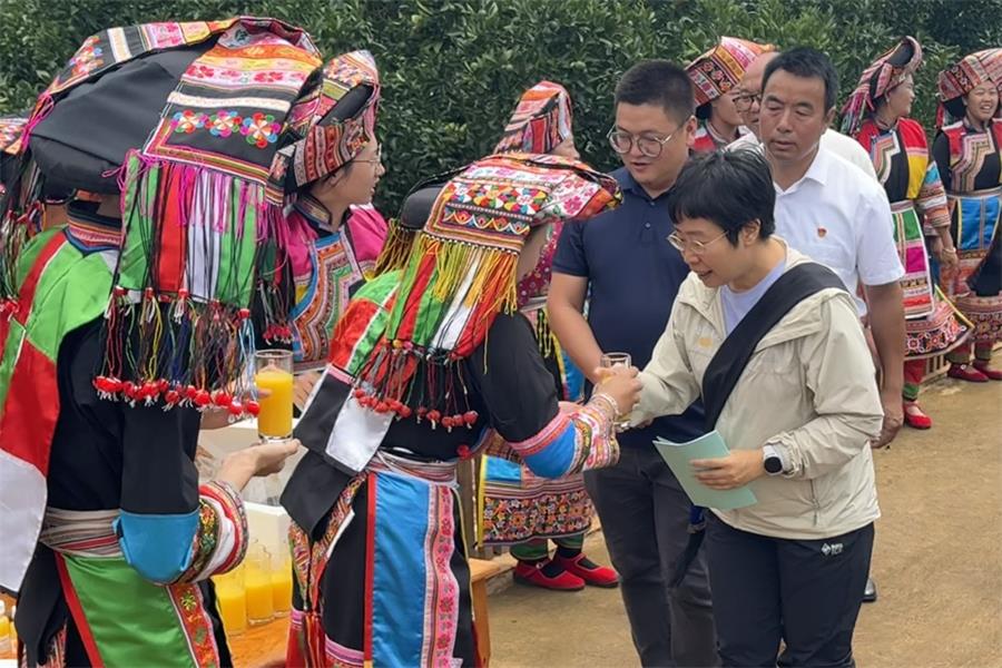 沿着219国道,蒙曼一行来到龙陵县勐糯镇,在田坡村了解甜橙产业发展,踏上观景台瞭望“万亩甜橙”;在海头村大海湿地闻荷香、品荷茶、享荷叶宴,品石斛花茶,赏石斛花开,感受“有一种叫云南的生活”。在大寨泼水广场体验傣韵织锦文化、马腿琴非遗文化,感受非遗传承的魅力,纵享米饼、灰粽制作乐趣。