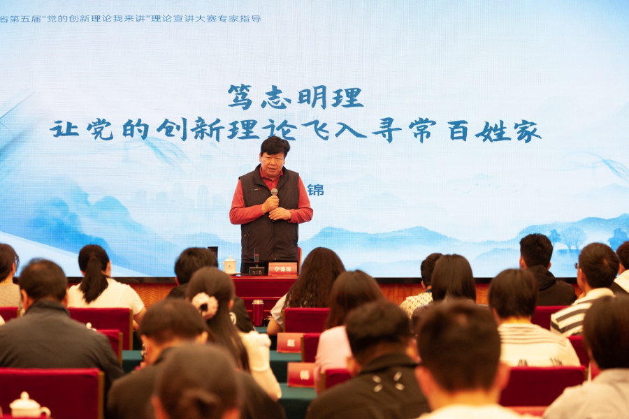让党的创新理论飞入寻常百姓家,坚定信仰,笃志明理是核心素养。长期从事宣讲工作,致力于云南“道德讲堂”建设的宁德锦老师,结合自己的所思所想有感而发:“一个做坚果的农民企业家可以大段大段背诵党的创新理论,我们的宣讲员有几个可以做到?”一番话引起全场深思。