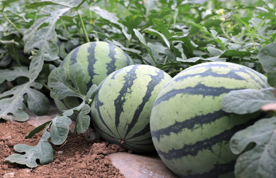 近期,云南省曲靖市罗平县九龙街道江边居委会汉田村九龙河畔的西瓜种植基地喜迎丰收,基地里粗壮的藤蔓上结满了饱满圆润的西瓜,大量游客、商户前来采摘、收购。