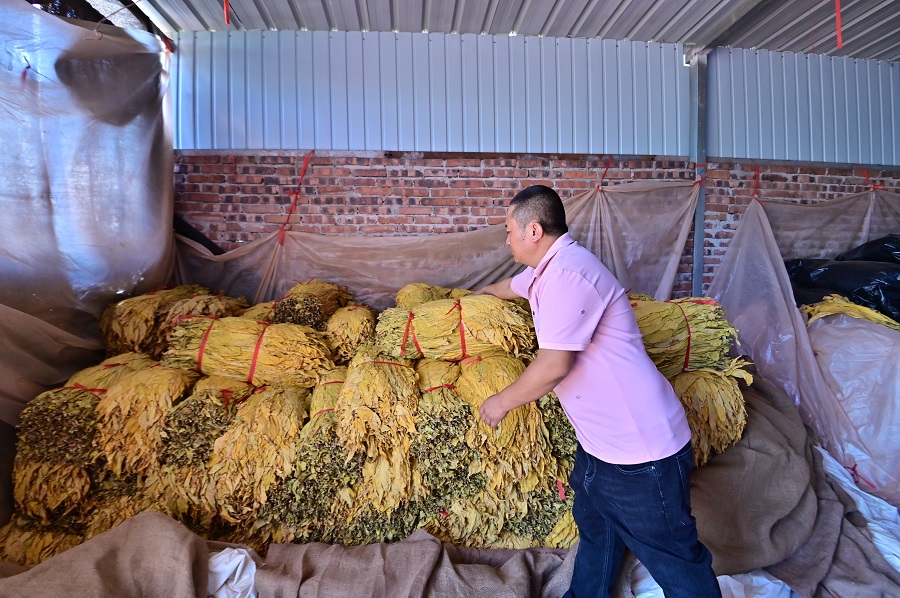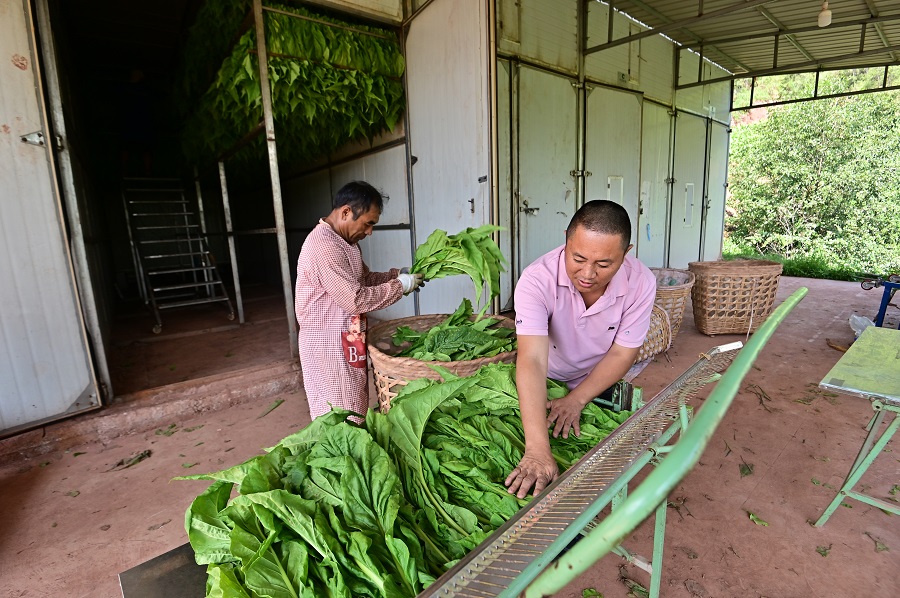 鲁子贤查看烘烤好的烟叶(8月30日摄)。郭康 供图
