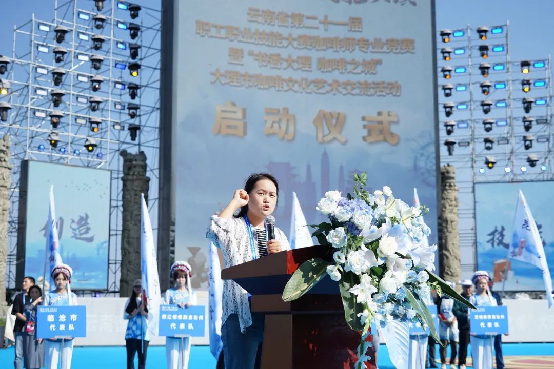 州人民政府副州长杨松出席活动并致辞,他表示省第二十一届职工职业技能大赛咖啡师专业竞赛在大理举办,是坚决贯彻落实党中央国务院、省委省政府关于创新职业教育和人才培养模式,推动工匠人才队伍建设的具体实践。本次大赛是全省咖啡师专业技能的练兵检阅和交流展示,必将为大理引进、培育咖啡产业职业技能人才,助力大理咖啡产业发展,推动大理咖啡之城打造产生积极深远的影响。大理将以此为契机,进一步厚植咖啡文化内涵,聚焦消费引领、资源聚集和产业发展,强化咖啡产业文化赋能,着力打造大理咖啡消费新场景,大力培育咖啡产业发展新引擎,不断推动大理咖啡之城建设创新发展。