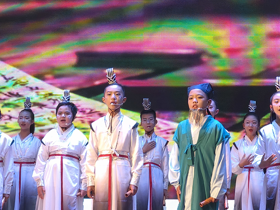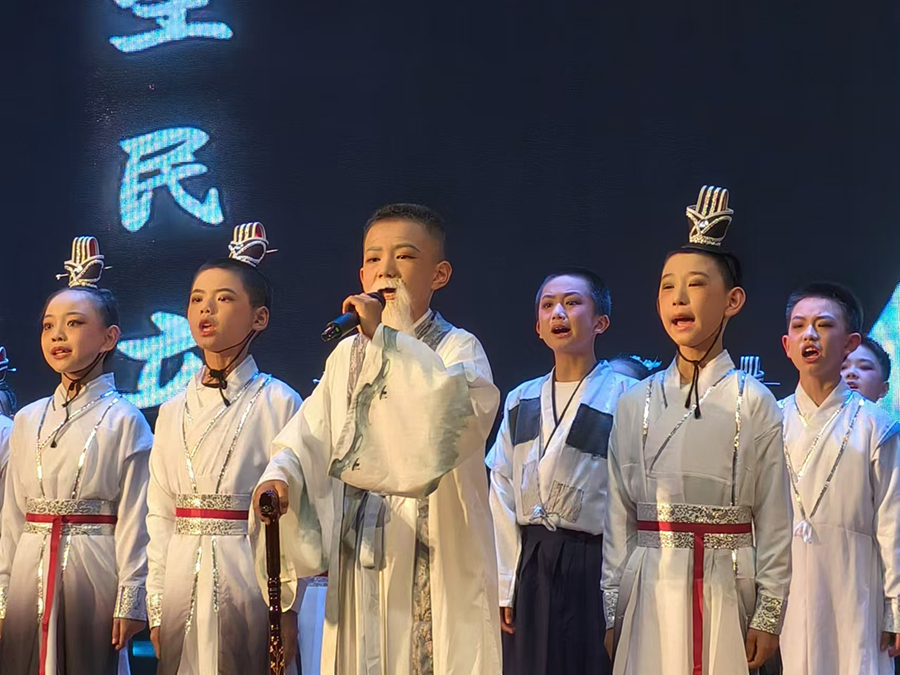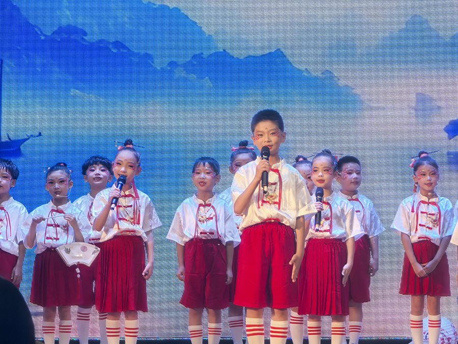 决赛分为“童声雅韵传诗心”“学子情深抒壮怀”“声震寰宇赞华夏”3个部分,分别由低年级、中年级、高年级的同学们带来了精彩的诗词诵读表演。