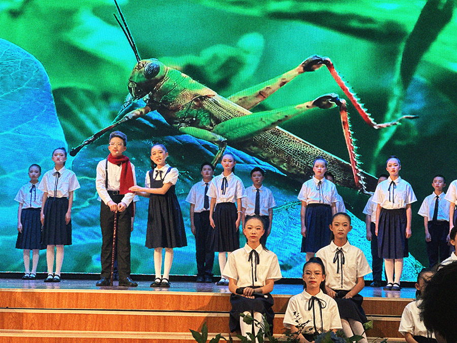学生们演绎《就是那一只蟋蟀》(10月16日摄)。