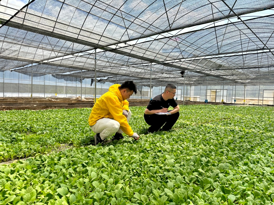 内管工作人员查看育苗情况(4月20日摄)。和晓勇 摄