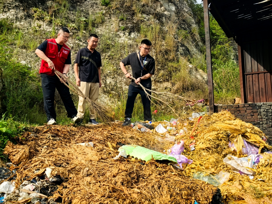 内管工作人员监督烟站处置废弃烟叶(9月8日摄)。木岗 摄