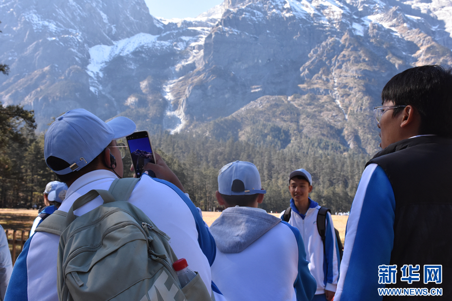 在玉龙雪山景区,研学团师生在云杉坪林间栈道漫步,在湛蓝的蓝月谷水边游玩打卡,将雄伟的玉龙雪山定格在画面里,还观看了以玉龙雪山为背景的原生态大型实景演出《印象·丽江》,感受丽江丰富多彩的民族文化。
