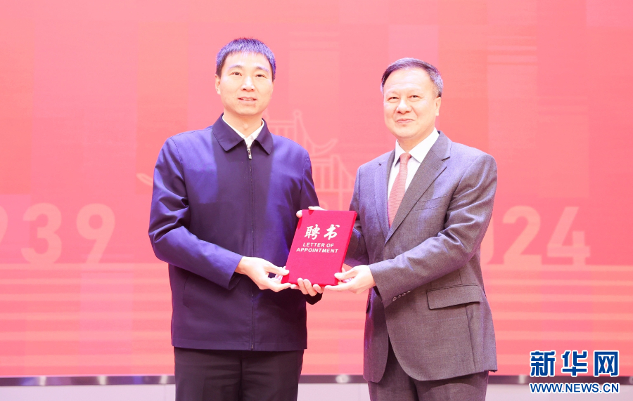 江华(左)向肖海鹏(右)颁发聘书(11月26日摄)。新华网发(玉溪市中山医院 供图)