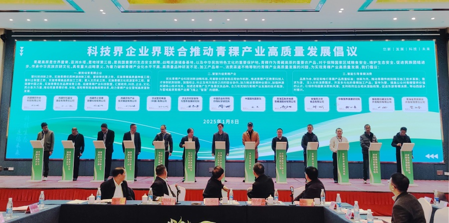 会上,科研界和企业界代表共同发起“科技界企业界联合推动青稞产业高质量发展倡议书”,倡议聚势培育青稞企业、聚智升级青稞产业、聚能引导青稞消费,共同发动青稞产业链上下游科研机构、企业以及合作伙伴,积极投身“强青稞、助健康”事业,推动高原地区农业发展和乡村振兴。