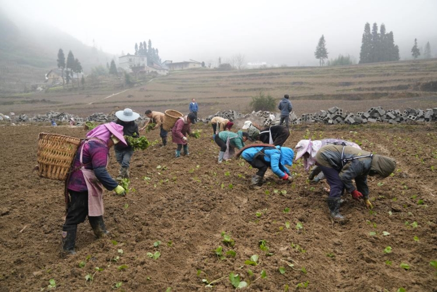 扎西镇扎岭村新地方村民小组村民正在栽种山葵(2025年1月7日摄)。