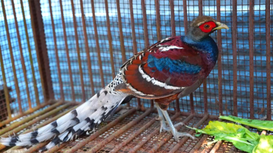 民警赶赴现场后发现,“野鸡”名为黑颈长尾雉,是国家一级重点保护野生动物,初步判断应是外出觅食,误闯居民家中。于是民警立即将它带回,并进行细致检查,未发现其有受伤的情况。经观察,黑颈长尾雉精神状况良好,且进食正常,综合评估后,民警已将其放归大自然。