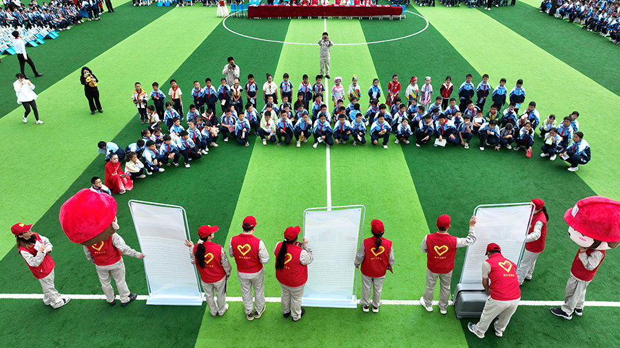 青年志愿者们与师生共同开展活动(5月30日摄)。段正田 摄