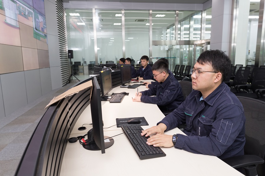 制丝车间中控室数字化应用场景(资料图)。林勇 摄