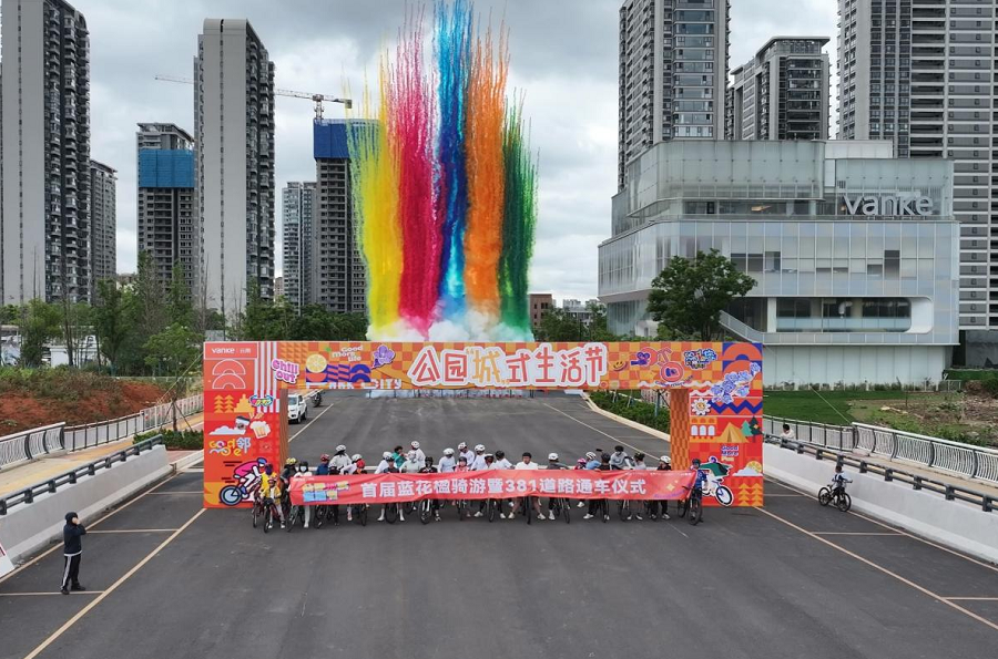 万科·公园城市项目前场的381号道路贯通开放(5月31日摄)。
