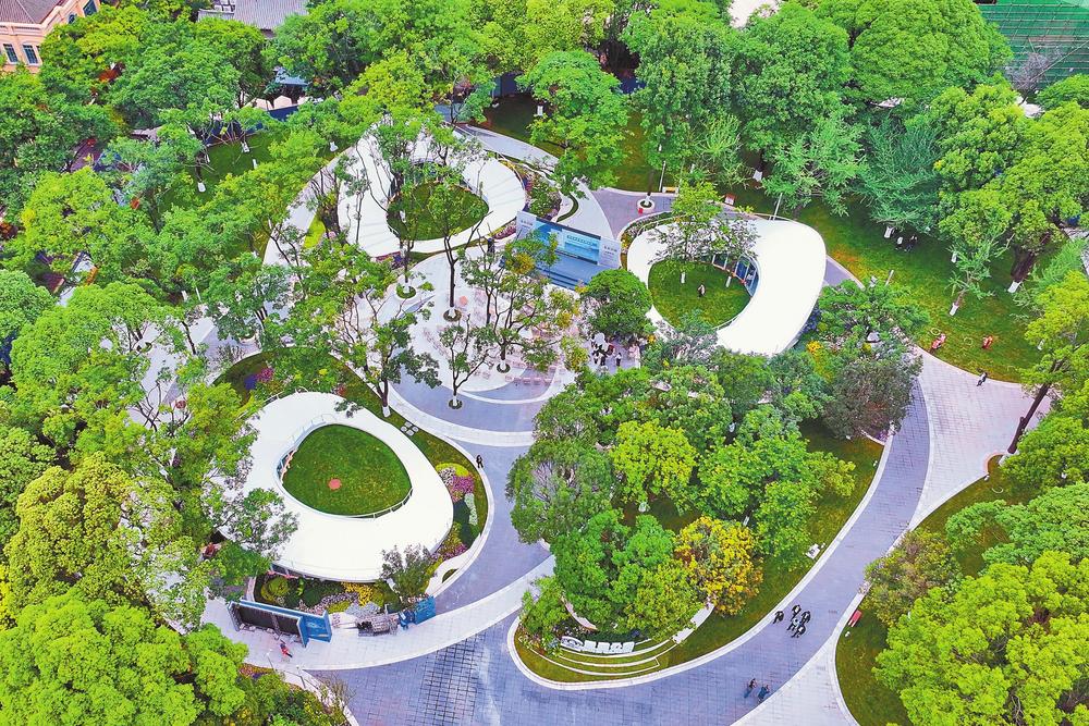 改造中,项目团队将百余棵树龄逾20年的大树作为重点保护对象,保留滇朴、香樟、桂花等骨干树种,补植200余种花卉植物,打造“春樱秋桂、夏荫冬绿”的季相景观。3栋“白茶落英”装配式建筑、475平方米繁花广场等新建设施,与滇朴、樱花等古树相映成趣,实现“一步一景、移步换景”。改造后,公园休憩空间从600平方米增至4917平方米,同步新增树池座椅、景观小品等设施。