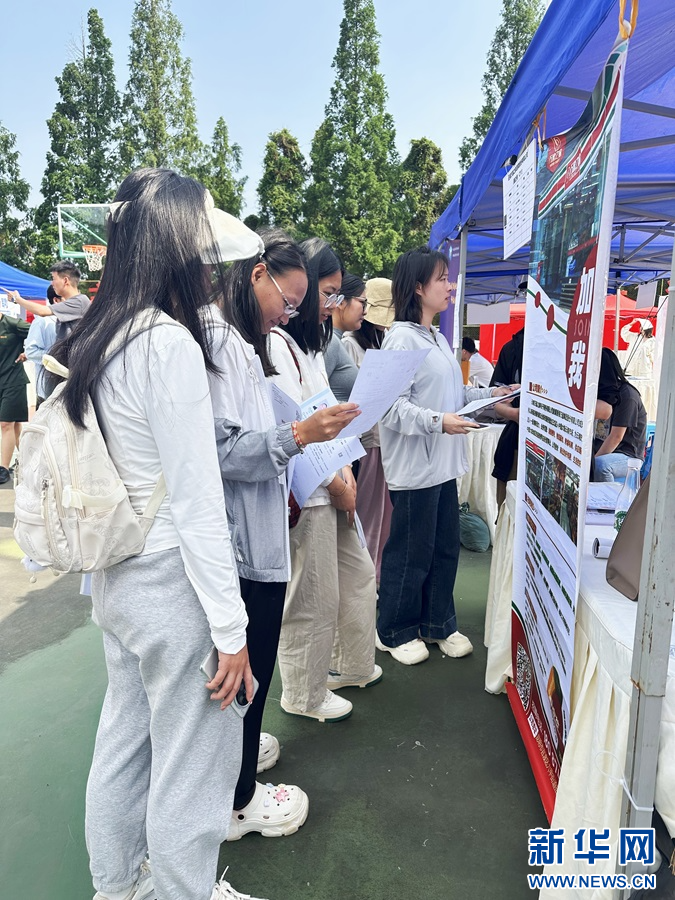 毕业生查看企业招聘信息(6月13日摄)。新华网发(李宗蓉 摄)