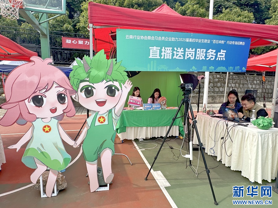 直播送岗服务点(6月13日摄)。新华网发(李宗蓉 摄)