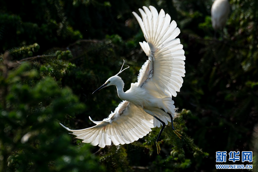 近日,在云南省保山市昌宁县,数千只白鹭和牛背鹭在这里安家筑巢,有的产卵、孵化,有的已经破壳,甚至出窝学习飞行。(完)(范芳钰 李钰泽)