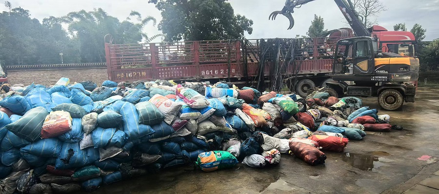 回收的废旧地膜统一装车后调往回收工厂(6月15日摄)。沈朝华 摄