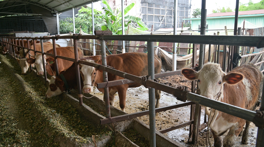 烟农蔡天洪养的牛(6月18日摄)。