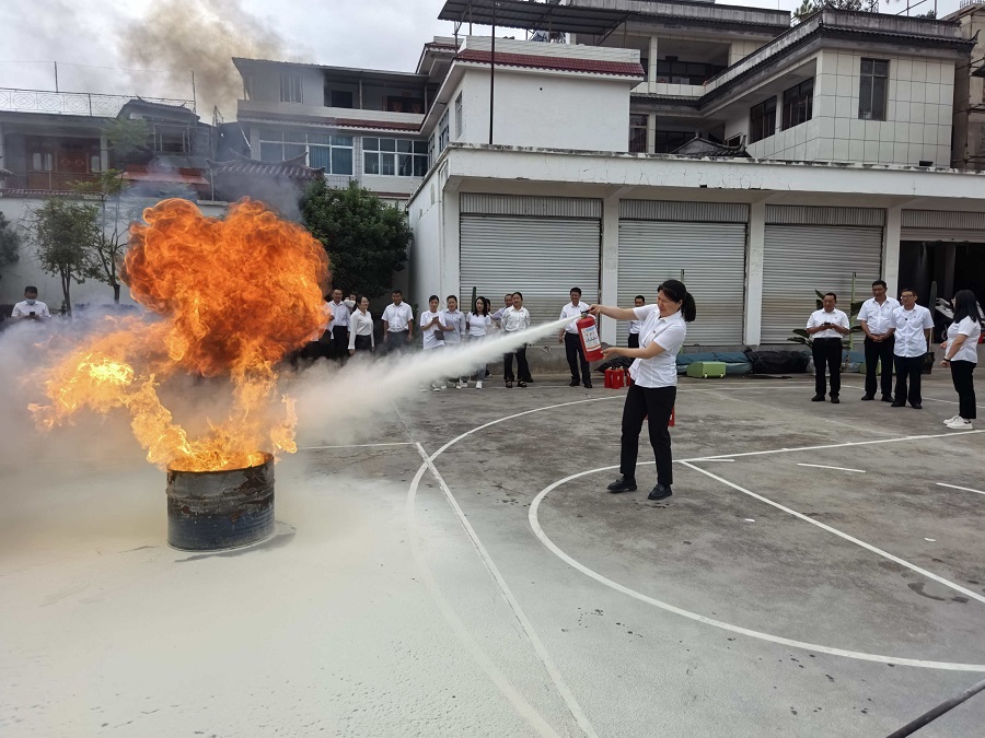 党支部与零售客户共同开展消防实操演练(6月20日摄)。覃燕 摄