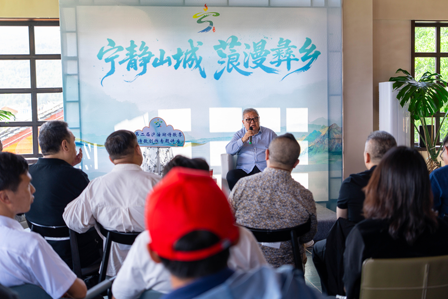 第二届泸沽湖诗歌季开展诗歌创作专题讲座(7月16日摄)。