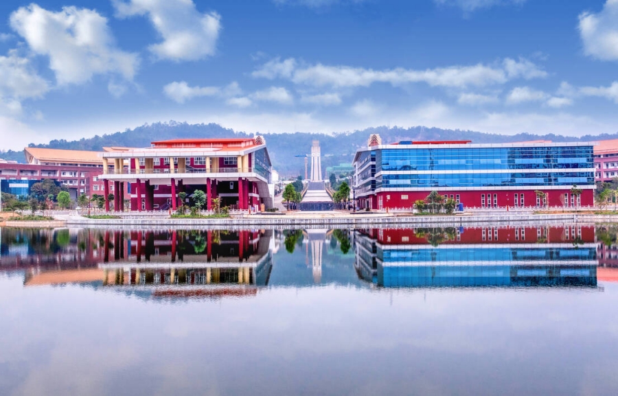 德宏州技工学校位于美丽的德宏傣族景颇族自治州,校园依山傍水,错落有致,环境优美,景色秀丽,是名符其实的绿色学校、生态校园。学校教育教学、生活设施齐备,教学楼、实训楼、学生公寓、学生食堂、田径运动场等一应俱全。