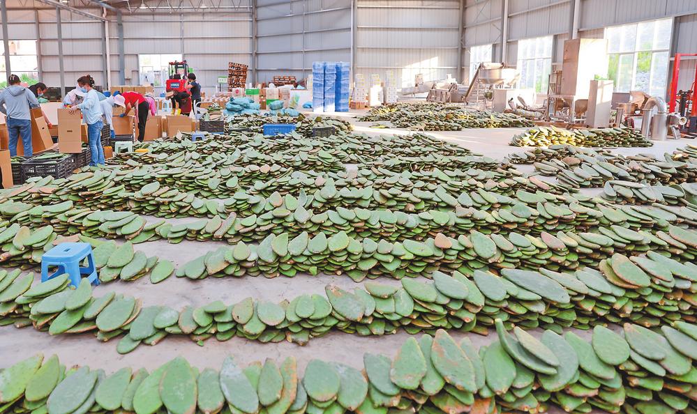 图为庄子田村村民们加工生产仙人掌产品。本报记者 黄兴能 摄