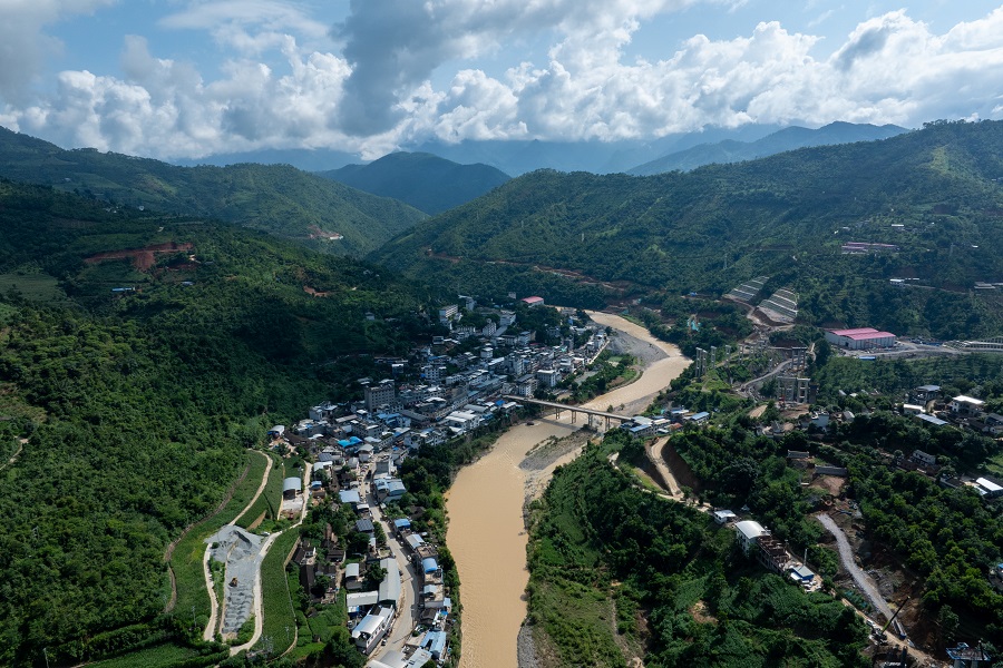 云县忙怀彝族布朗族乡航拍图(8月1日摄)。