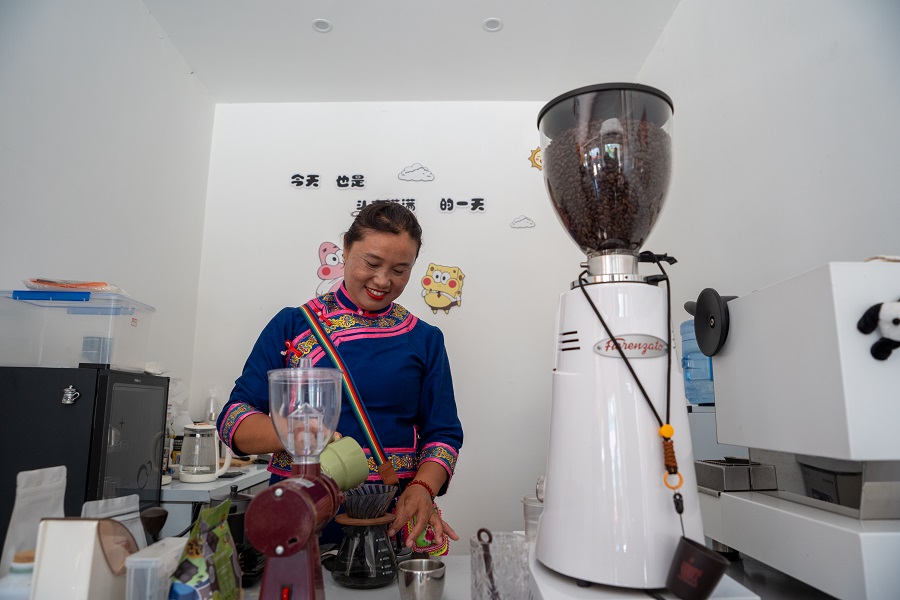 立足布朗山优质自然环境,2013年李开菊带头试种40多亩咖啡,并带动村民当年种植500多亩,目前规模已扩至2000多亩。为解决销售难题,她牵头成立云县源寨咖啡种植农民专业合作社,负责种植管理、技术指导与收购,通过自媒体平台将咖啡豆远销广州等一线城市,让“山间咖香”变成乡亲们的增收源泉。