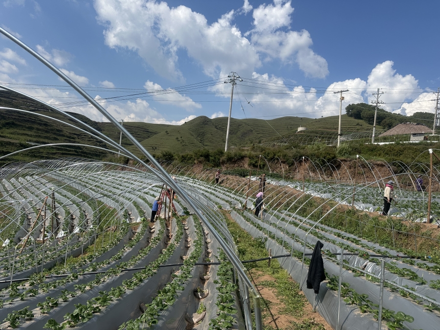 航拍巧家县炉房乡草莓种植产业基础设施补短板项目(8月14日摄)。李仁念 摄