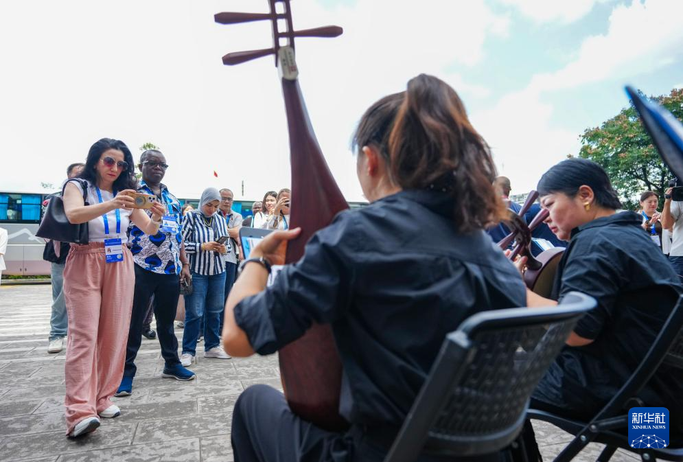 9月8日,与会代表在玉溪聂耳纪念馆参访时欣赏、拍摄演出。
