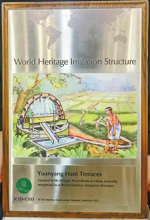 9月10日,国际灌排委员会第76届国际执行理事会会议在马来西亚吉隆坡召开,会议正式公布了2025年世界灌溉工程遗产名录,元阳哈尼梯田入选。至此,这一延续1300余年的山地农耕灌溉系统,成为全球首个集“世界文化遗产”“全球重要农业文化遗产”“世界灌溉工程遗产”于一身的“三遗产”农耕文明典范。