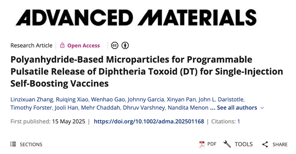 此外,她参与了另一项面向公共健康挑战的研究:开发一种“自助加强”型疫苗平台,利用聚酸酐材料(polyanhydrides)构建可编程脉冲释放微粒,并借助人工智能技术筛选材料组合。通过单次注射即可实现多剂次疫苗的效果。这一成果发表于《AdvancedMaterials》。