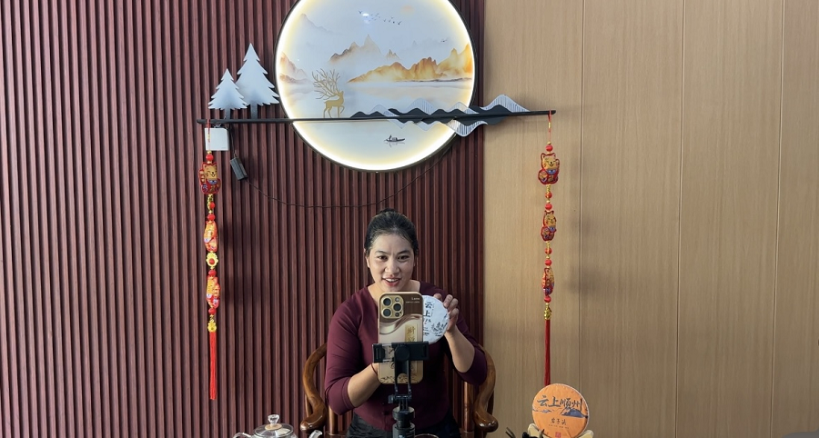 罗银在直播卖茶(9月17日摄)。王玉秋 摄