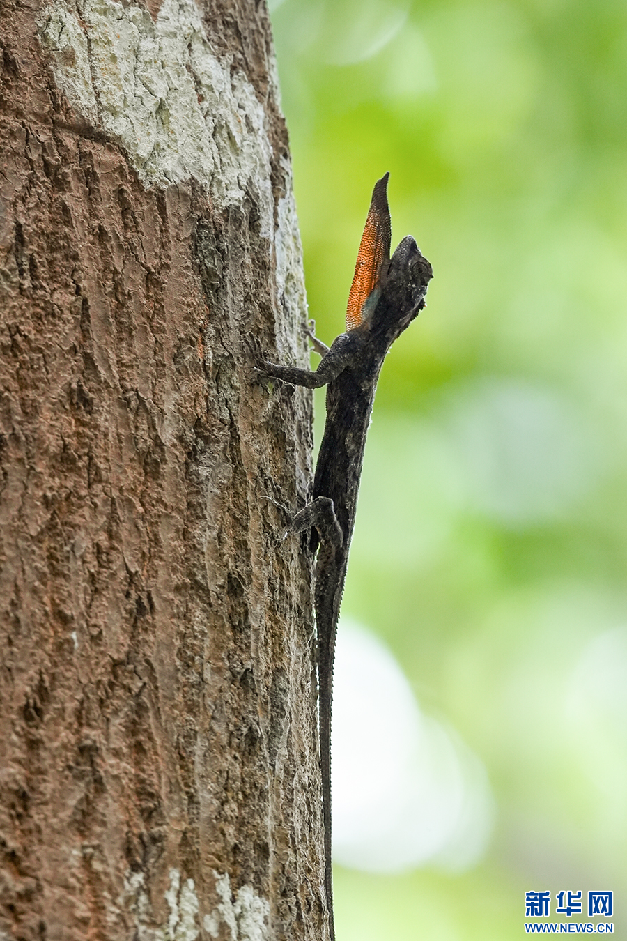 在树上活动的裸耳飞蜥(资料图)。新华网发(张鹏 摄)