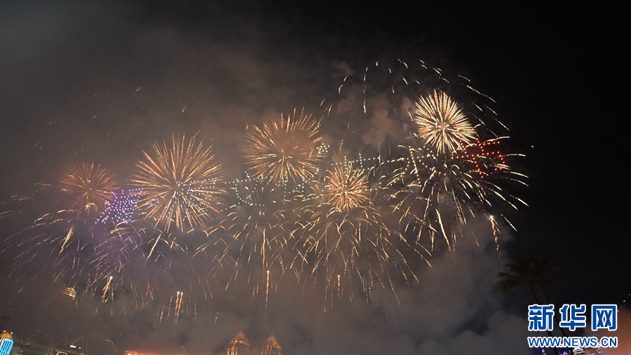 “澜·湄嘉年华”现场绽放的璀璨烟花(10月3日摄)。新华网发(柴静 摄)
