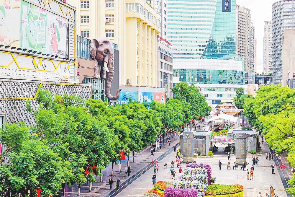 昆明南屏步行街“大象”创意外墙装置亮相。记者 胡妤雅 摄