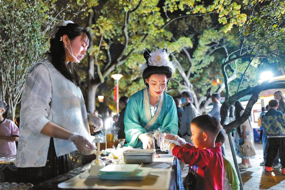 全省餐饮消费热度持续攀升,“云南味道”颇具吸引力。昆明市2025宜良烤鸭美食嘉年华、玉溪市2025年澄江抚仙湖铜锅美食节、红河哈尼族彝族自治州“千年石屏味·百桌豆腐香”千人宴等活动精彩纷呈,让国内外游客沉浸式体验滇味生活。重点餐饮企业推出中秋团圆主题套餐和多项满减优惠,“团圆经济”持续升温。数据显示,全省餐饮营业额较去年同期增长6.9%。此外,昆明市“云端赏月庆双节”活动、丽江市黑龙潭公园水幕投影秀等“夜食”“夜娱”“夜购”“夜演”等众多夜消费场景层出不穷、玩法多样。