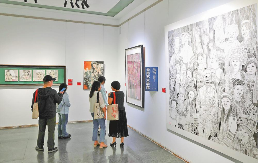 10月15日,“民族形象——2025全国高等艺术院校人物画教学与创作研讨会暨教师作品展”在昆明市博物馆开展。展览汇集全国著名艺术家和30所高等艺术院校教师的200余幅精品力作,展现当下中国民族人物画的教学成果与创作活力。展出将持续至11月3日。记者 黄兴能 摄