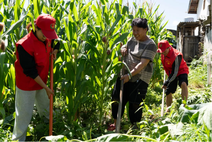 “红色代办”志愿者帮助群众干农活(卯副 摄)