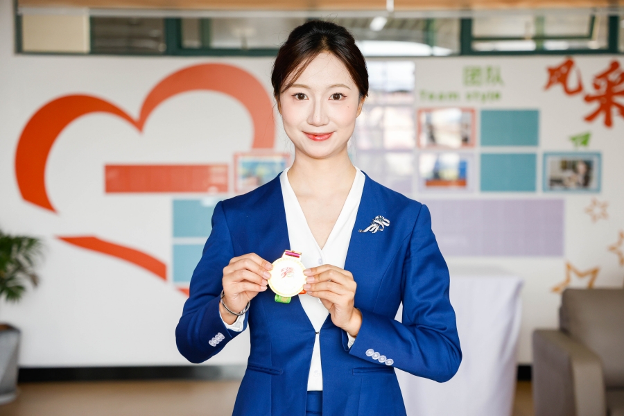 比赛第二天,因赛题设置导致比赛系统宕机,打乱了原有比赛节奏。面对这一突发状况,李雨霞迅速调整状态,凭借沉着的心理素质和临场应变能力,从容不迫地完成后续任务。“我在赛前进行了大量练习,准备充足,在赛场上就只想着如何把每一位‘客人’服务好。”李雨霞说道,比赛中,面对客人提出的个性化需求与临时状况,她始终保持镇定,敏锐捕捉客人需求、站在客人角度考虑问题,稳定好客人情绪并快速处理分线任务,将赛场视为真实工作现场,用心倾听、用情沟通。