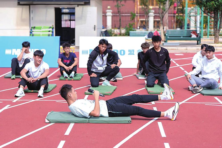 10月19日,“盟多面对面—与世界冠军对话田径的极限与突破”主题活动在云南体育运动职业技术学院举办。活动特邀中国田径队功勋教练、苏炳添的外籍主管教练兰迪·亨廷顿主讲《短跑技术分解:从起跑到冲刺的科学化训练》,苏炳添速度研究与训练中心核心教练杨键铭带来了《技术进化论:科技赋能下的短跑训练新趋势》的专题分享。随后举行的“冠军训练课”环节,世少赛百米冠军、北京世锦赛接力银牌得主莫有雪现场带队指导,为参训运动员带来一场高水平的实战教学。记者 娄莹 摄