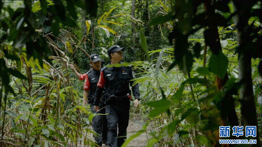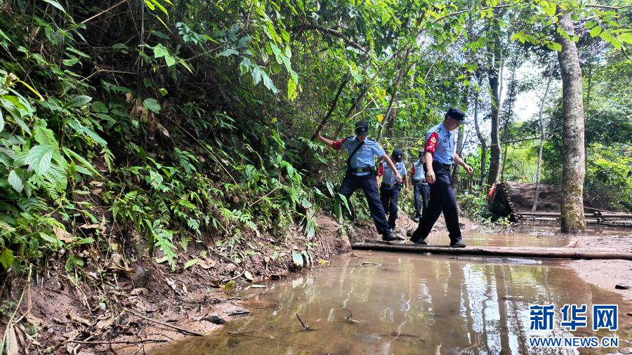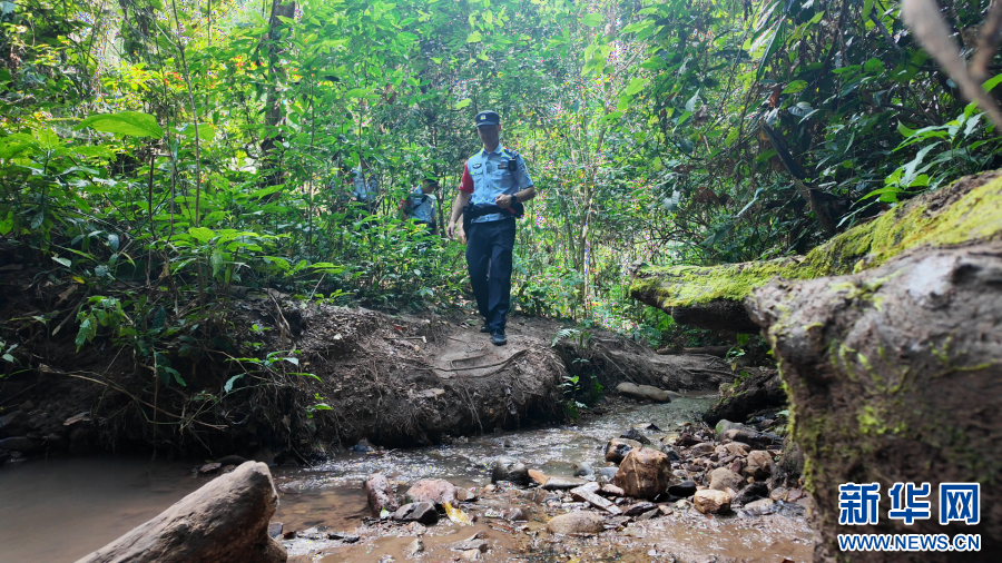 民警在雨林中徒步巡逻(10月21日摄)。新华网发(云南省公安厅新闻宣传处供图)