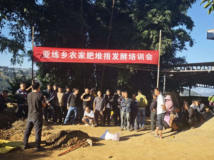 “大家看,一层秸秆、一层牲畜粪便,再撒上这把‘发酵引子’,浇上水,让它‘发’起来。”在亚练乡的农家肥堆捂培训现场,技术员用朴实的语言,向烟农们讲解着堆捂农家肥的诀窍。