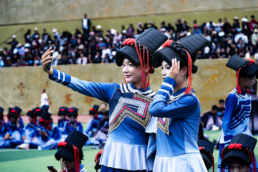 凌征国入选摄影作品《新彝族人影像——发个朋友圈》(2024年7月18日摄)。