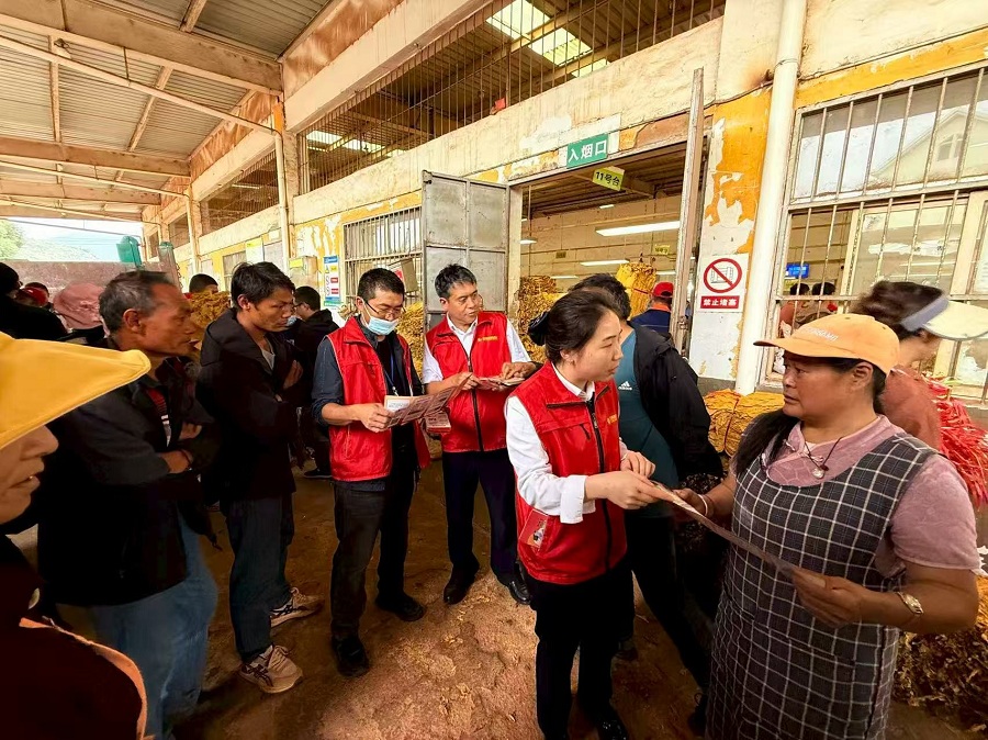 金融机构工作人员开展烤烟资金服务营销(9月10日摄)。