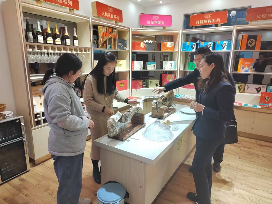 金融机构工作人员与火腿销售方沟通交流(资料图)。