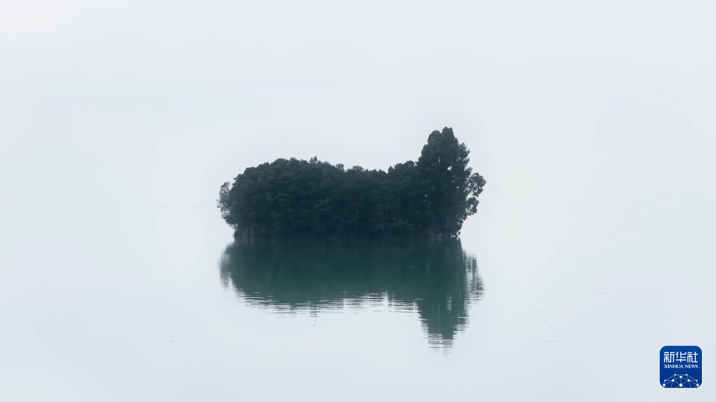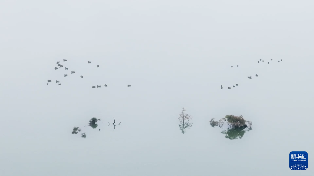 初冬雨后,傍晚时分,云南晋宁南滇池国家湿地公园鲸鱼湾薄雾笼罩。航拍镜头下,湖面如镜,候鸟翩跹,静动交织,宛如一幅韵动且极简的水墨画,展现出南滇池湿地的宁静与灵动。