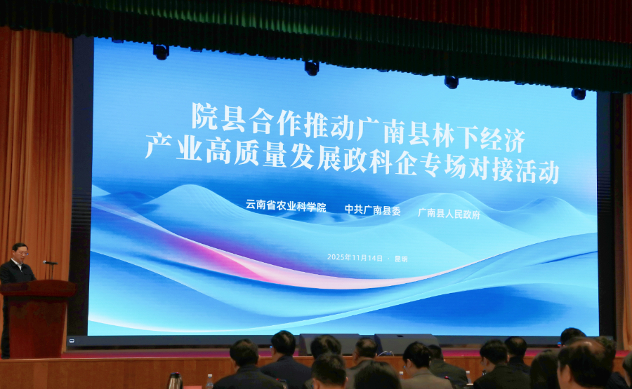 11月14日,云南省农业科学院与文山壮族苗族自治州广南县联合举办林下经济产业高质量发展政科企专场对接活动,深化院地合作,共促乡村振兴。多年来,云南省农业科学院持续深耕广南县农业产业,以科技为翼,助力当地破解发展瓶颈,在八宝米、油茶、林下中药材等领域取得显著成效,推动广南县农特产业从“大而不强”向“优质高效”跨越。