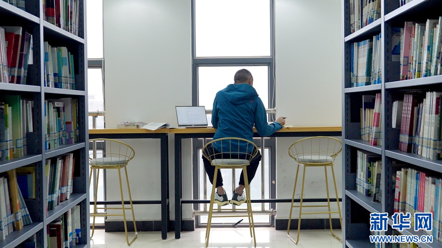 张健之独自在图书馆钻研(11月4日摄)。新华网发